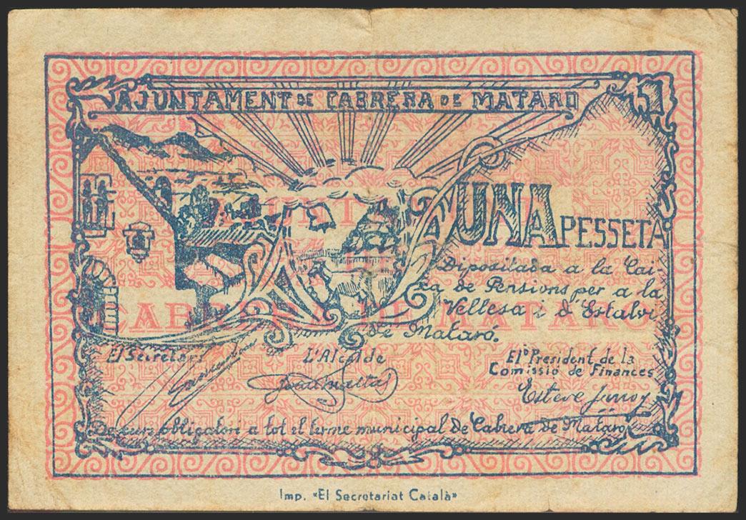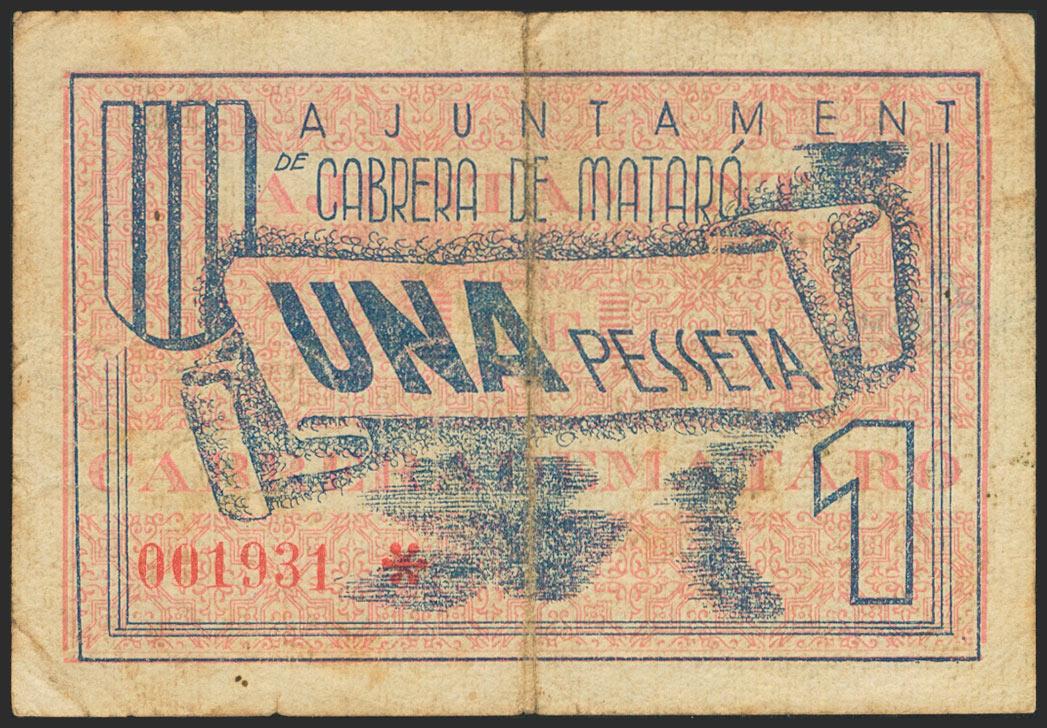 CABRERA DE MATARO (BARCELONA). 1 peseta. (1937ca). (González: 7239). Fine.