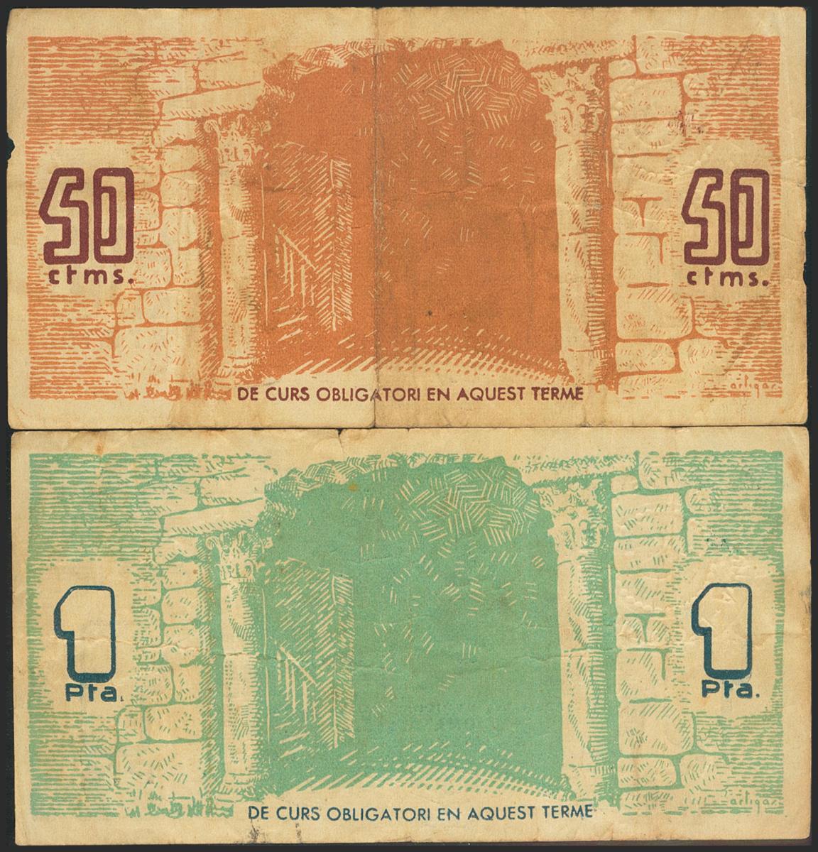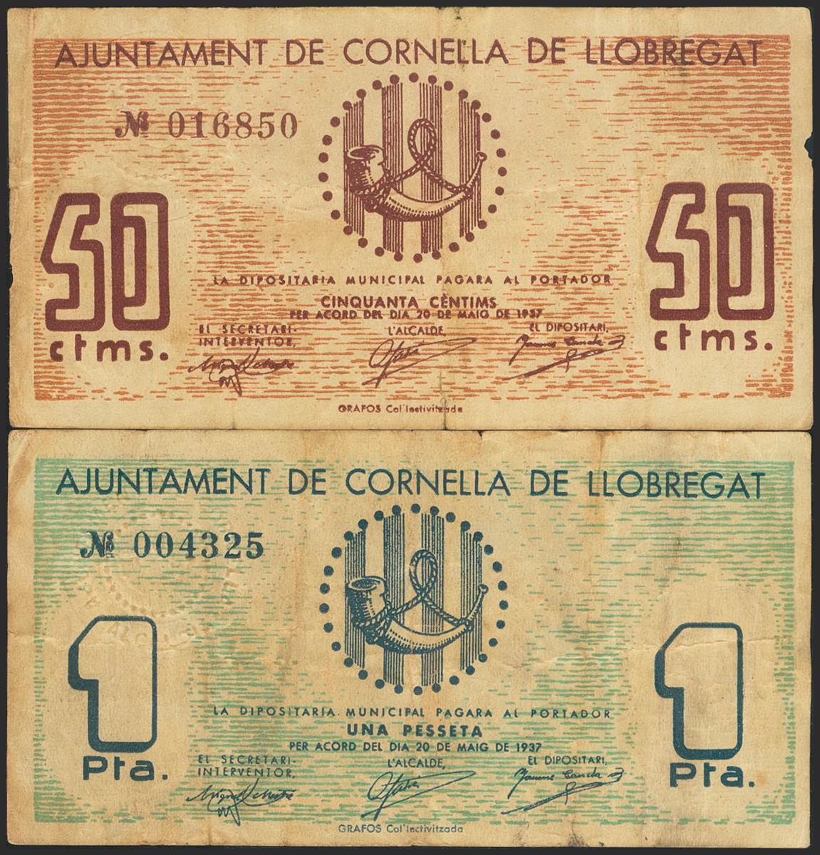 CORNELLA DE LLOBREGAT (BARCELONA). 50 Cents and 1 Peseta. May 20, 1937. (González: 7685/86). Complete series. Almost Very Fine.