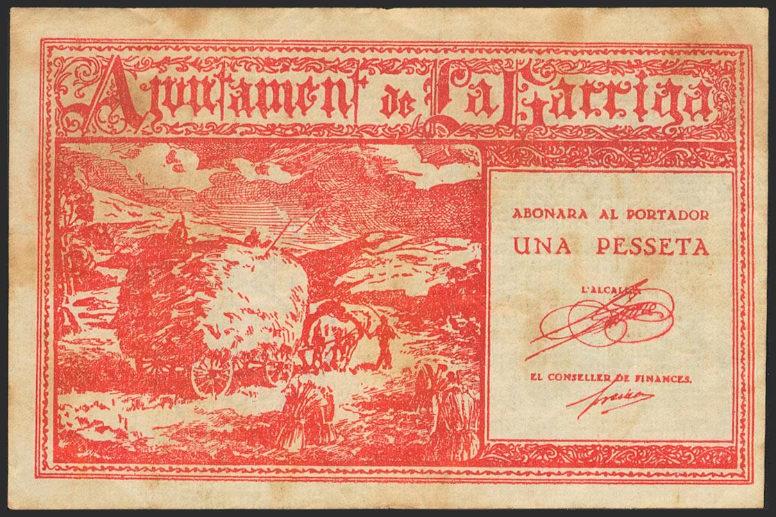 GARRIGA (BARCELONA). 1 peseta. July 1937. (González: 7989). Very Fine.