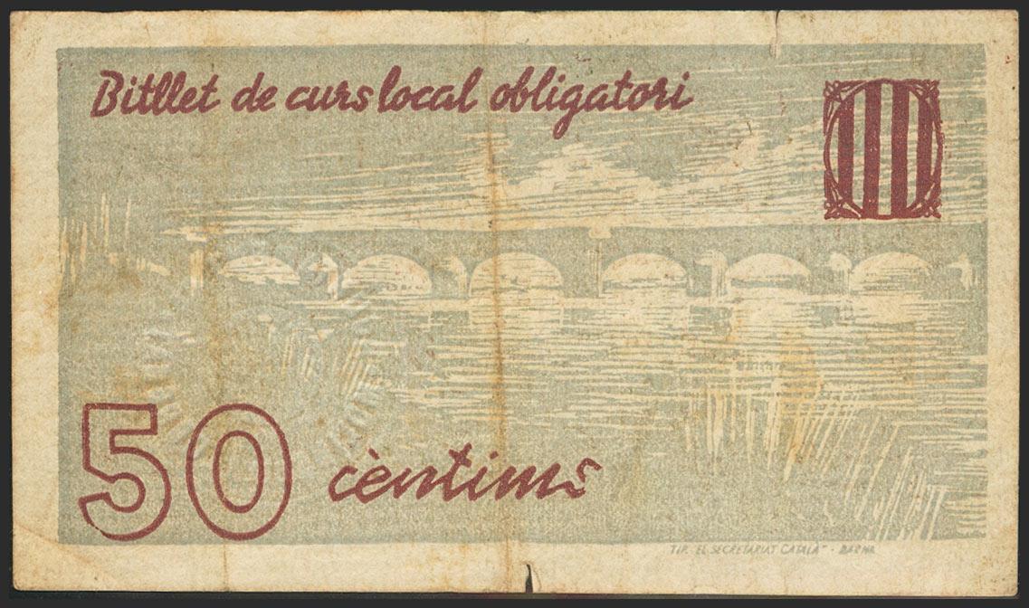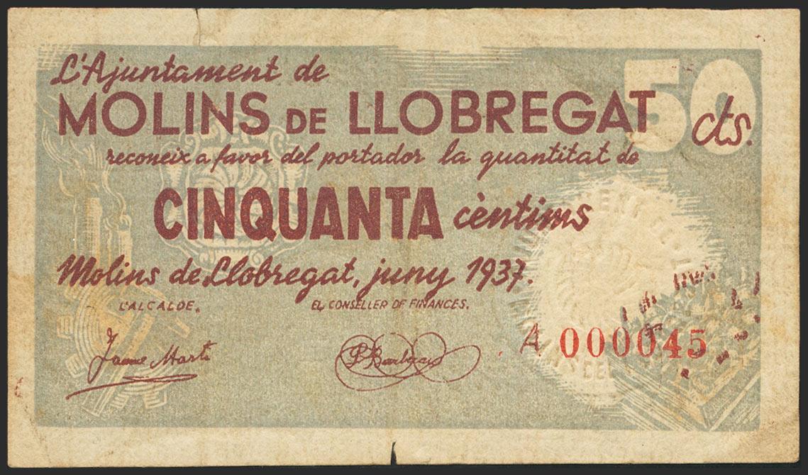 MOLINS DE LLOBREGAT (BARCELONA). 50 cents. June 1937. Series A. (González: 8699). Very Fine.