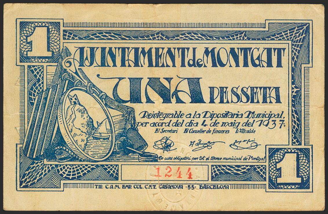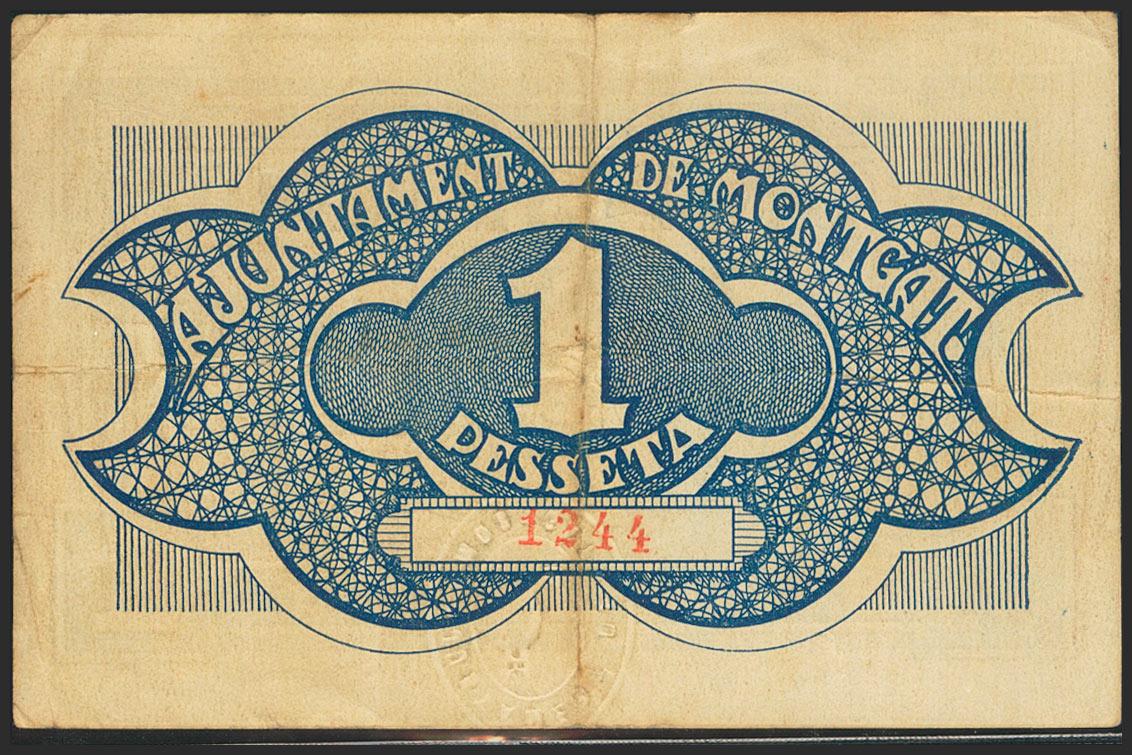 MONTGAT (BARCELONA). 1 peseta. May 1937. Without series. (González: 8792). Unusual Good Very Fine.