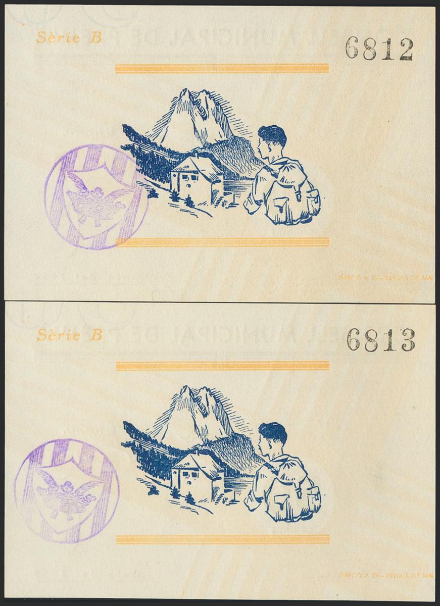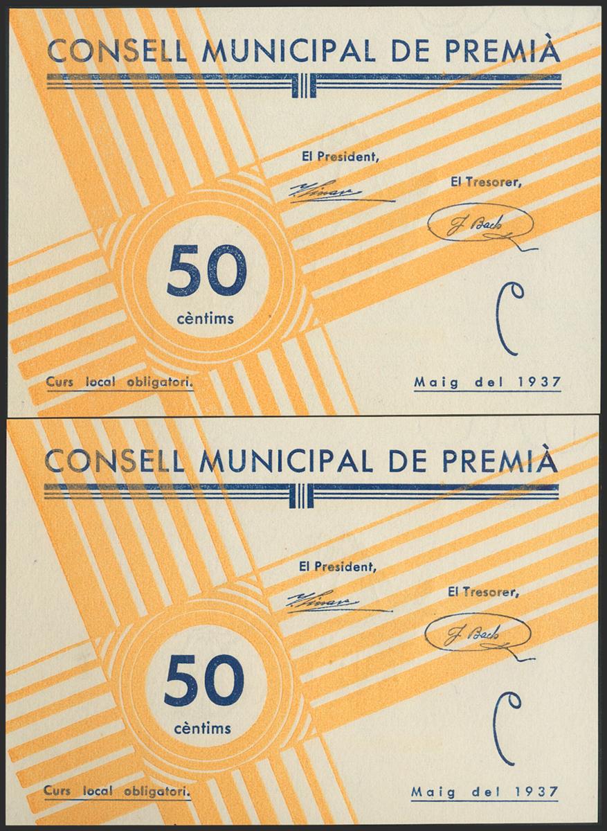 English AWARD (BARCELONA). 50 cents. Correlative pair. Series B. (González: 9454). Uncirculated.