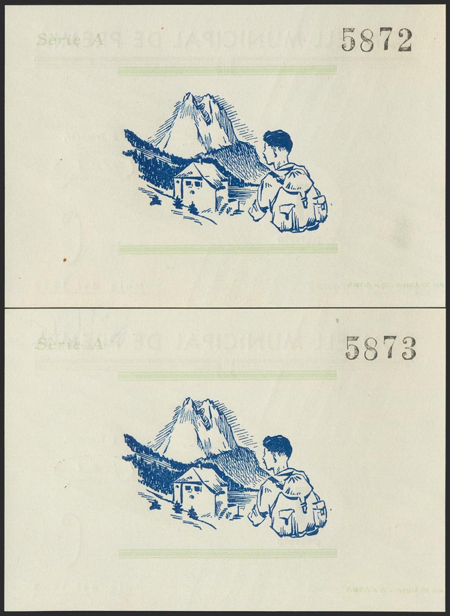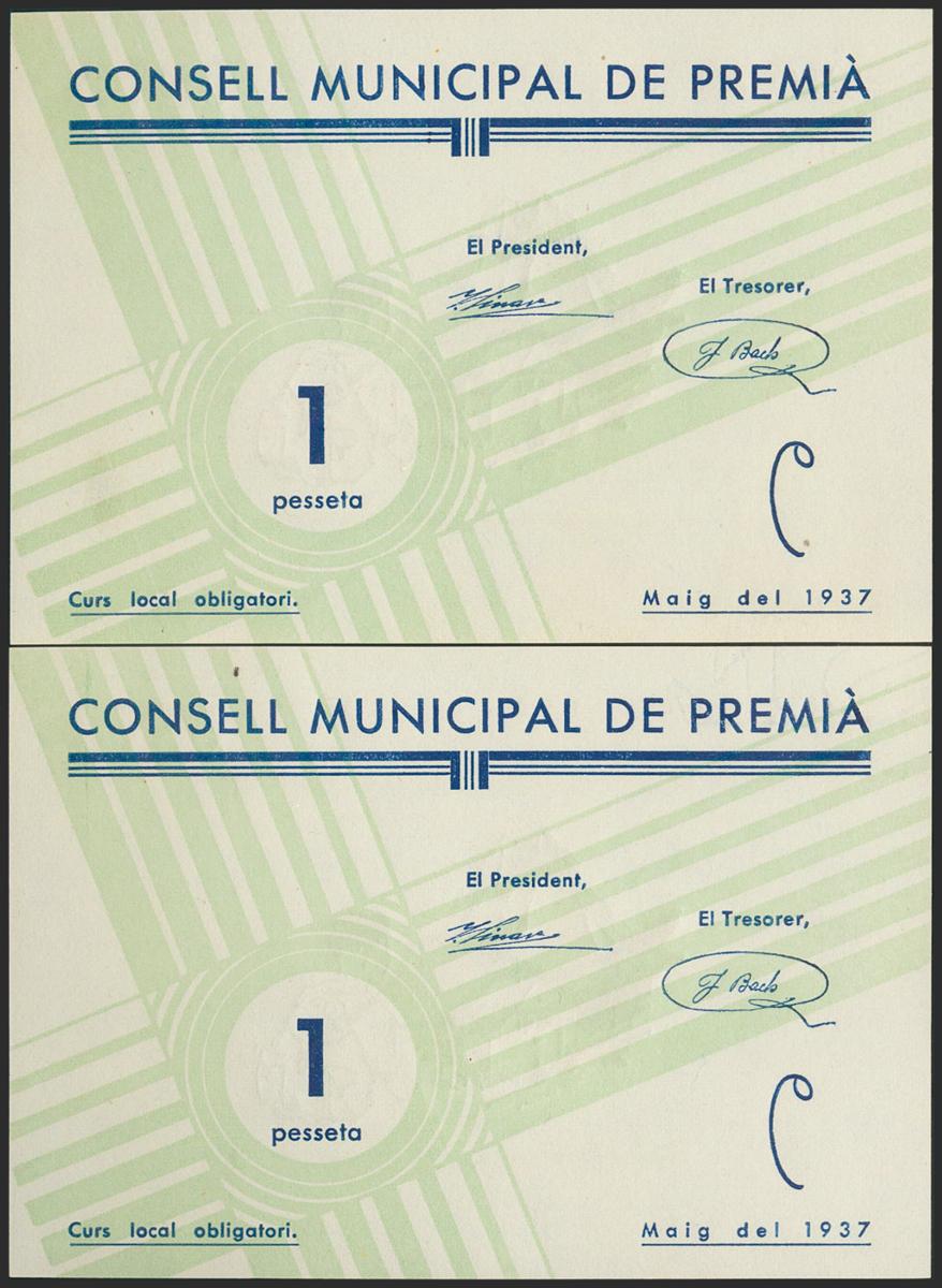 AWARD (BARCELONA). 1 peseta. May 1937. Correlative couple. Series A. (González: 9455). Uncirculated.