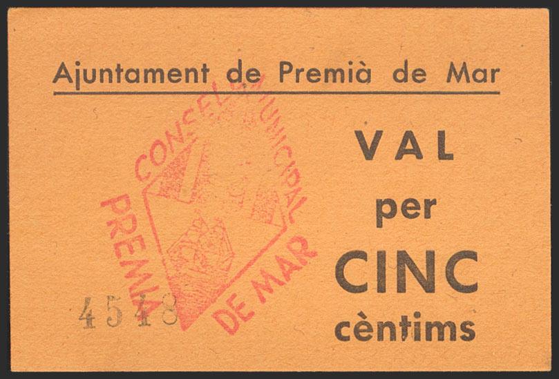 English MAR AWARD (BARCELONA). 5 Cents. (1937ca). (González: 9466). Rare Uncirculated.