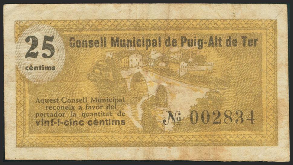 English PUIG-ALT DE TER (GERONA). 25 cents. July 4, 1937. (González: 9478). Almost Very Fine.