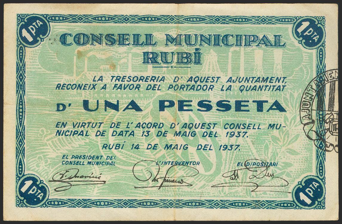 RUBY. 1 peseta. May 13, 1937. Series A. (González: 9761). Very Fine.