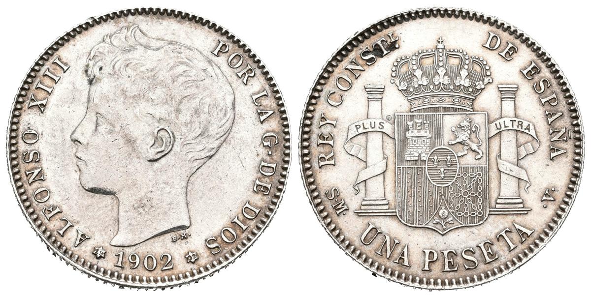 ALFONSO XIII (1885-1931). 1 peseta. (Ar. 4.97g / 23mm). 1902 * 19-02. Madrid SMV. (Cal-2019-64). Good Very Fine/ Almost Extremely Fine. Cleaned.