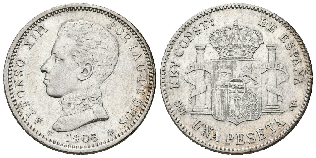 ALFONSO XIII (1885-1931). 1 peseta. (Ar. 5.03g / 23mm). 1903 * 19-03. Madrid SMV. (Cal-2019-67). Almost Extremely Fine. Scratch.