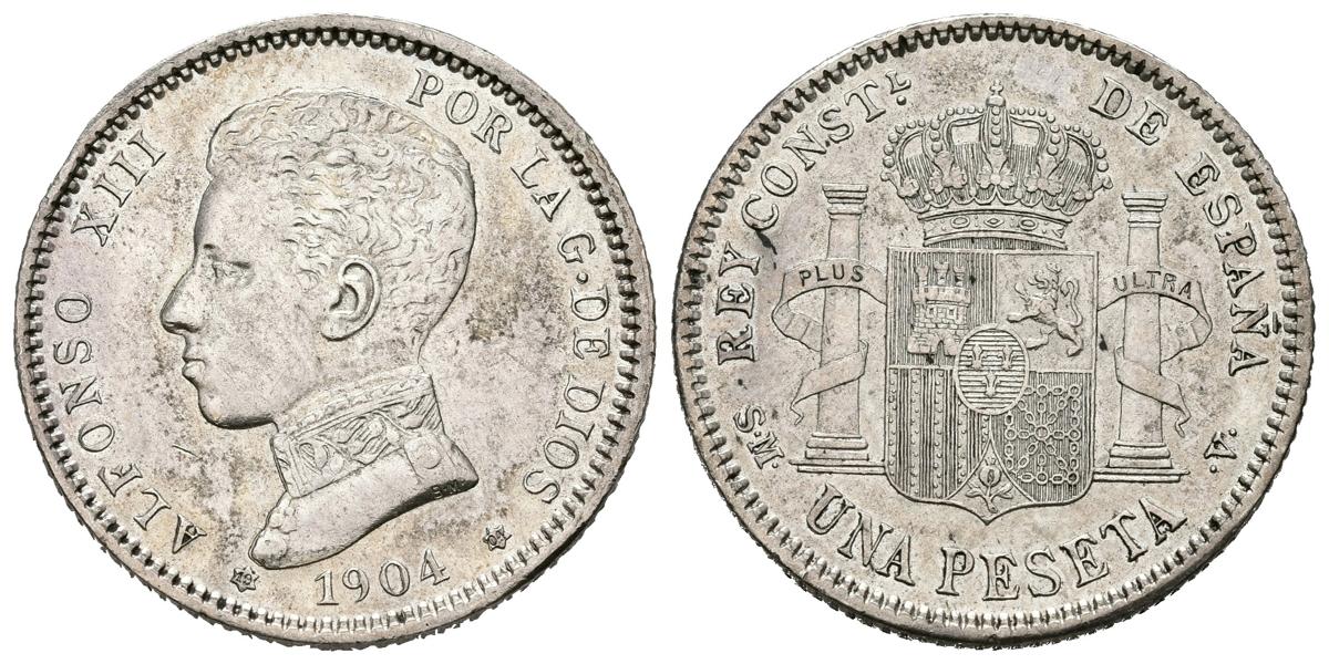 ALFONSO XIII (1885-1931). 1 peseta. (Ar. 4.96g / 23mm). 1904 * 19-04. Madrid SMV. (Cal-2019-68). Extremely Fine/ Good Extremely Fine Light bump on the edge.