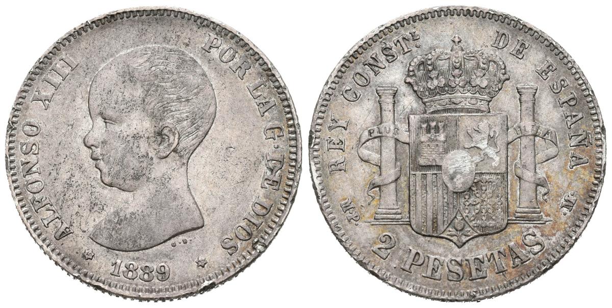 ALFONSO XIII (1885-1931). 2 Pesetas. (Ar. 9.92g / 27mm). 1889 * 18-89. Madrid MPM. (Cal-2019-82). Very Fine.