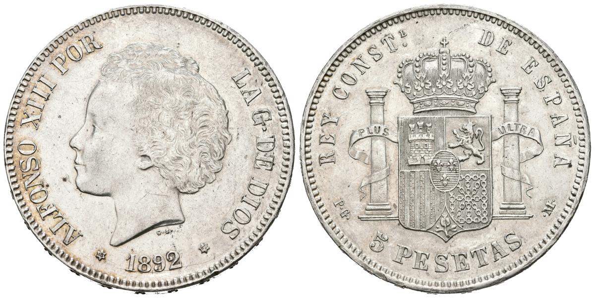 ALFONSO XIII (1885-1931). 5 Pesetas (Ar. 24.93g / 37mm). 1892 * 18-92. Madrid PGM. (Cal-2019-99). Good Very Fine. Cleaned.
