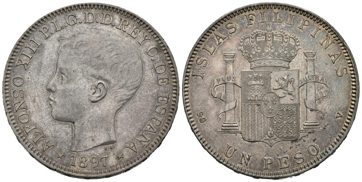 ALFONSO XIII (1885-1931). 1 Weight. (Ar. 24.96g / 37mm). 1897. Manila SGV. (Cal-2019-122). Almost Extremely Fine/ Extremely Fine. Beautiful patina.