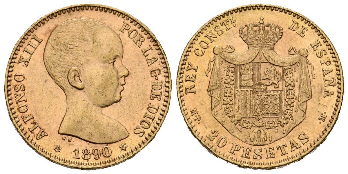 ALFONSO XIII (1885-1931). 20 pesetas. (Au. 6.40g / 21mm). 1890 * 18-90. Madrid MPM. (Cal-2019-114). Good Very Fine.