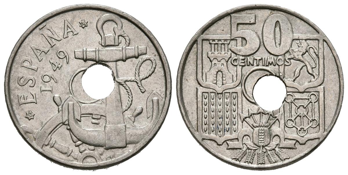 SPANISH STATE (1936-1975). 50 Cents (CuNi. 3.85g / 20mm). 1949 * 19-62. Madrid. (Cal-2019-27). Almost Extremely Fine. Displaced hole.