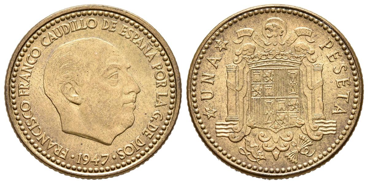 SPANISH STATE (1939-1975). 1 peseta. (Al-Ae. 3.58g / 20mm). 1947 * 19-53. Madrid. (Cal-2019-53). Almost Uncirculated.