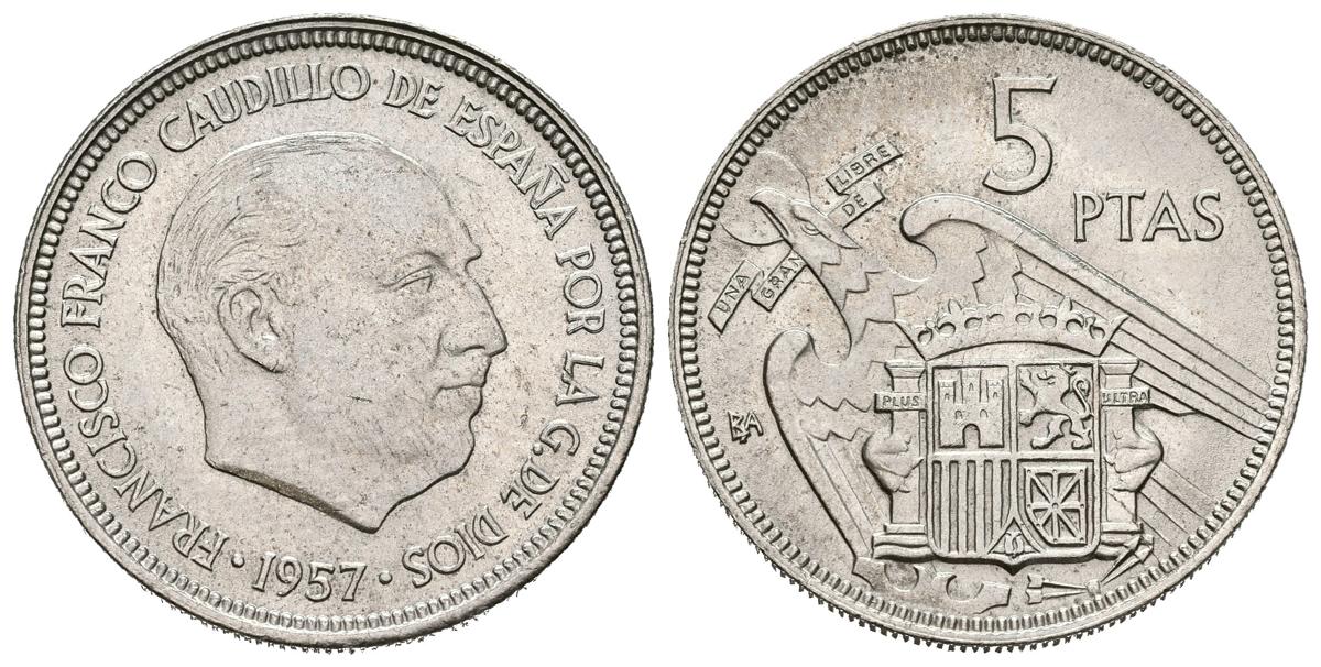 SPANISH STATE (1939-1975). 5 Pesetas. (Ni. 5.72g / 23mm). 1957 * BA. (Cal-2019-154). I Ibero-American Exhibition of Numismatics and Medals. Almost Uncirculated.