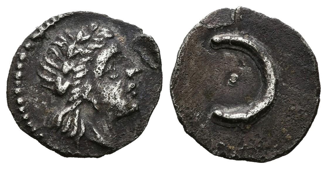 CARTAGONOVA (Cartagena, Murcia). 1/12 Shekel. (Ar. 0.34g / 10mm). 200-190 BC (FAB-563). Anv: Male head to the right. Rev: Crescent with point. Good Very Fine.