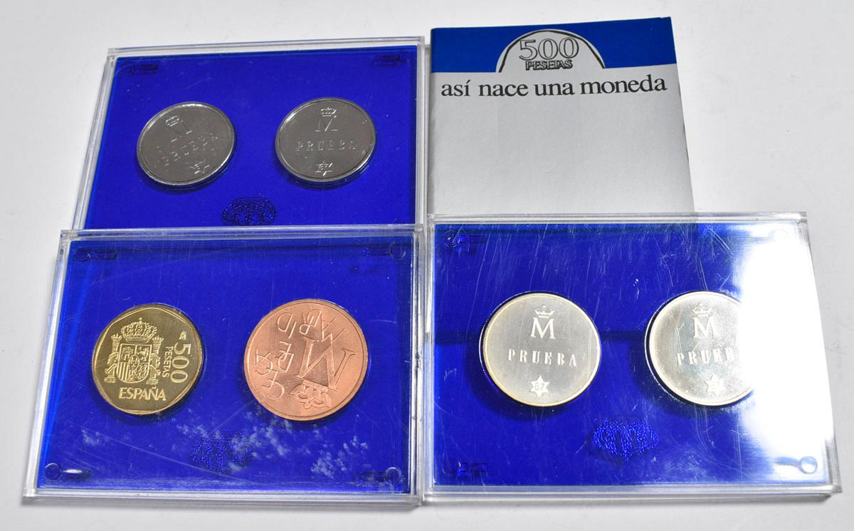 JUAN CARLOS I (1975-2014). 500 pesetas. FNMT tests. Commemorative box XXV Anniversary of the Wedding of Kings Juan Carlos I and Sofía. The set includes 6 coins and a booklet "This is how a coin is born". Uncirculated.