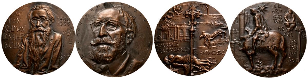 SPANISH STATE (1939-1975). Set of 2 bronze medals minted by the FNMT in 1966 for Ramón María del Valle Inclán and Ramón Menéndez Pidal. Excellent state of conservation. TO EXAMINE.