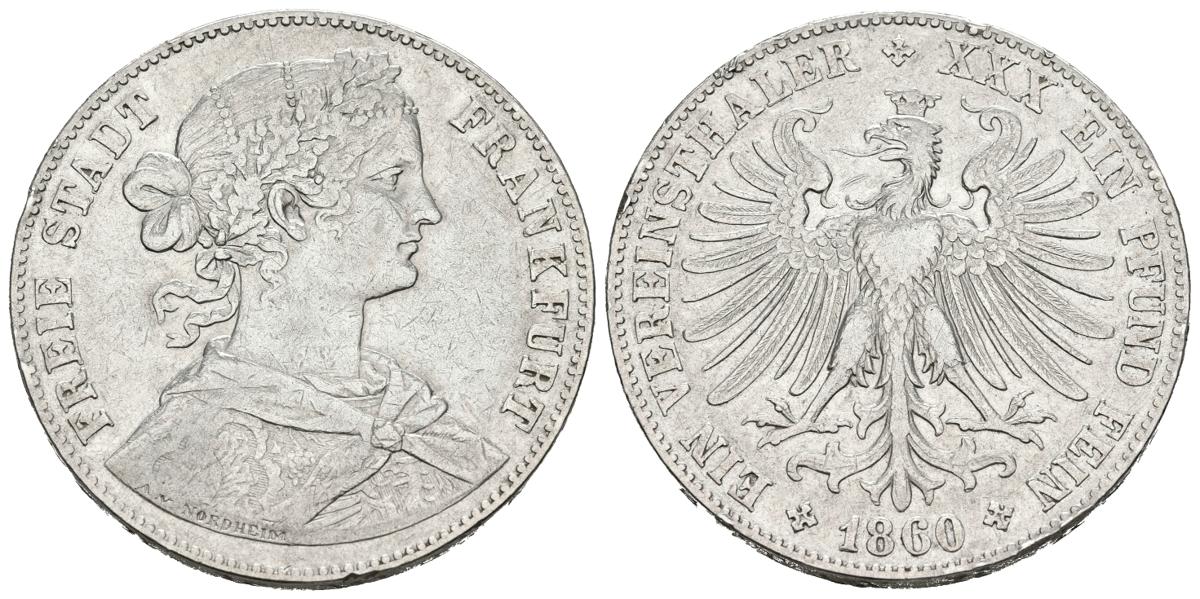 GERMANY. 1 Thaler (Ar. 18.32g / 33mm). 1860. Free City of Frankfurt. German States. (Km # 360). Very Fine. Tapping on the edge.