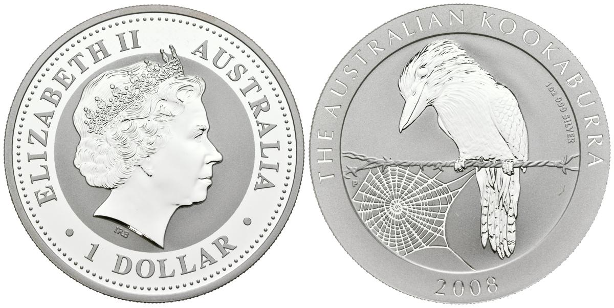 AUSTRALIA. 1 USD (Ar. 31.64g / 40mm). 2008. Perth. Kookaburra. (Km # 1760). PROOF.