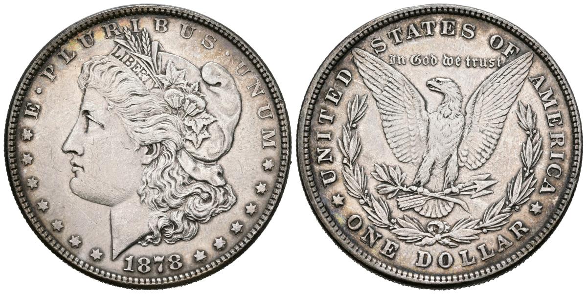 English USA. 1 USD (Ar. 26.74g / 38mm). 1878. Philadelphia. (Km # 110). Good Very Fine. Nice tone.
