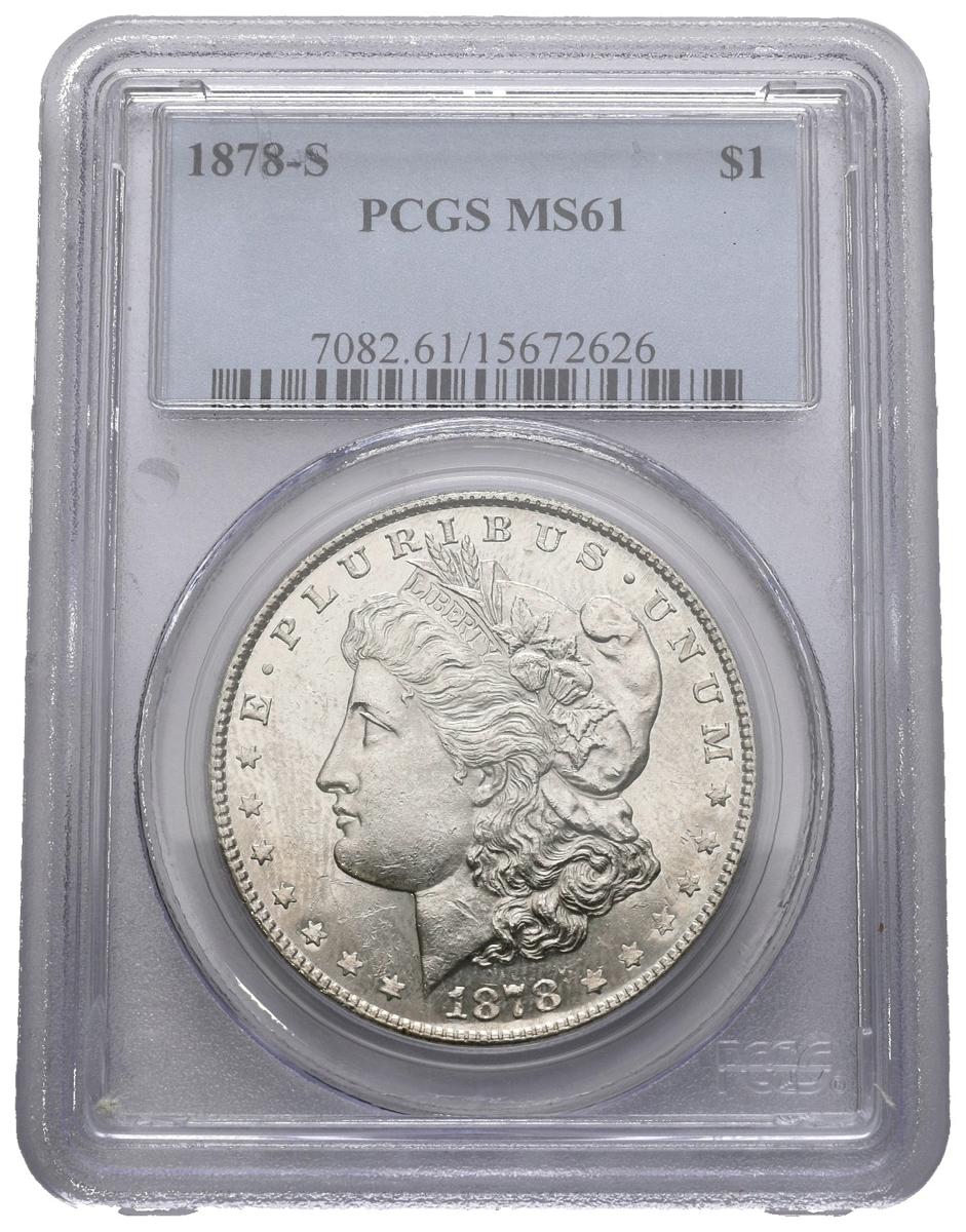 USA. 1 USD (Ar. 26.73g / 38mm) *. 1878. San Francisco S. (Km # 110). MS 61. Encapsulated by PCGS. * Theoretical weight and measure.