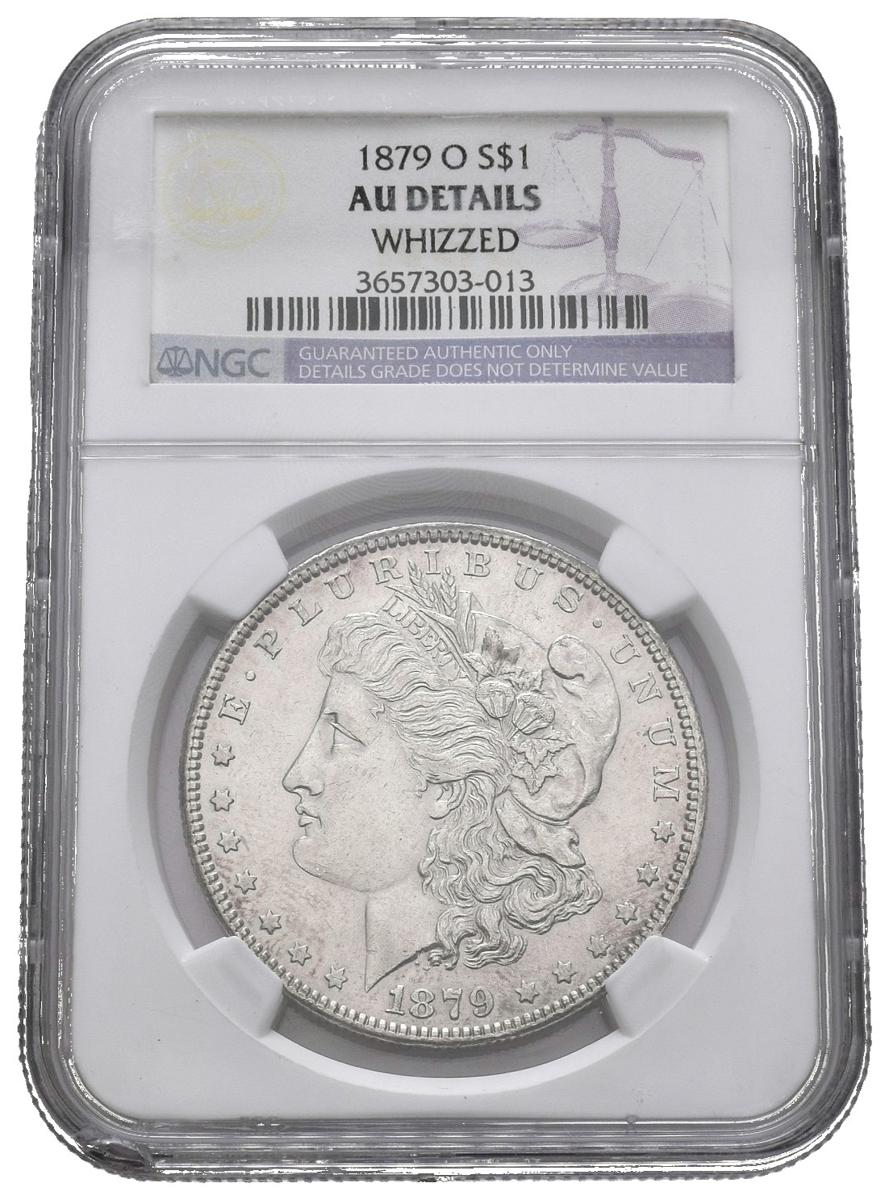 USA. 1 USD (Ar. 26.73g / 38mm) *. 1879. New Orleans O. (Km # 110). AU Details. Artificial Luster . Encapsulated by NGC. * Theoretical weight and measure.