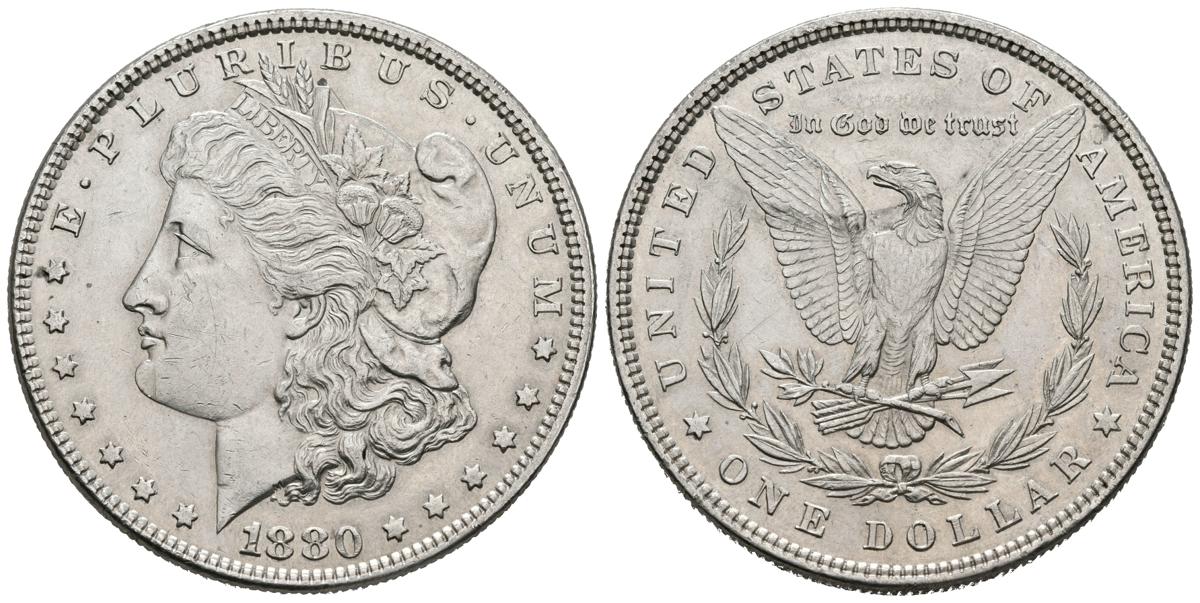 English USA. 1 USD (Ar. 26.73g / 38mm). 1880. Philadelphia. (Km # 110). Good Very Fine/ Almost Extremely Fine