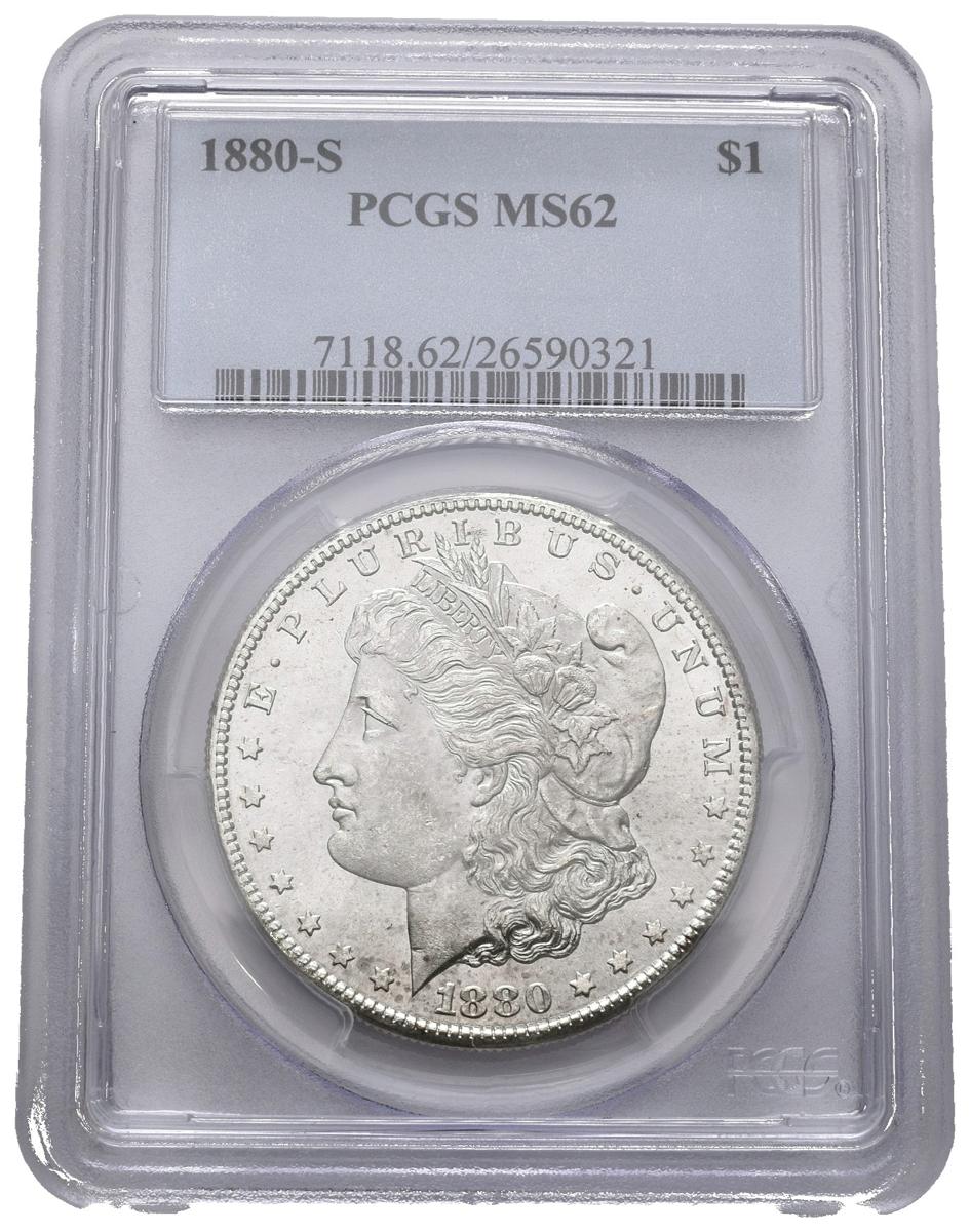 USA. 1 USD (Ar. 26.73g / 38mm) *. 1880. San Francisco S. (Km # 110). MS 62. Encapsulated by PCGS. * Theoretical weight and measure.