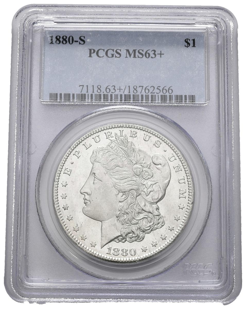 USA. 1 USD (Ar. 26.73g / 38mm) *. 1880. San Francisco S. (Km # 110). MS 63+. Encapsulated by PCGS. * Theoretical weight and measure.