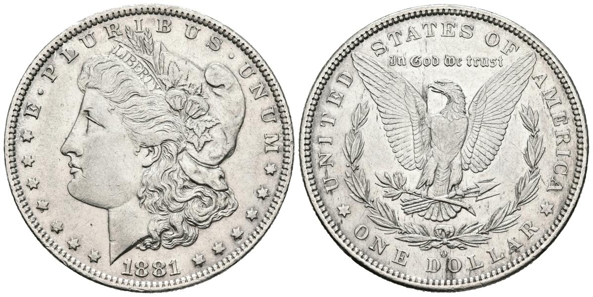 USA. 1 USD (Ar. 26.74g / 38mm) *. 1881. New Orleans O. (Km # 110). Almost Extremely Fine. Marquitas.