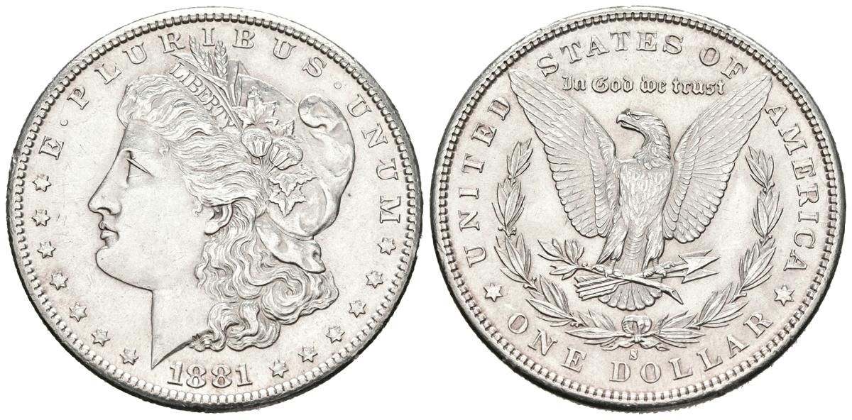 USA. 1 USD (Ar. 26.68g / 38mm) *. 1881. San Francisco S. (Km # 110). Extremely Fine. Cleaned.