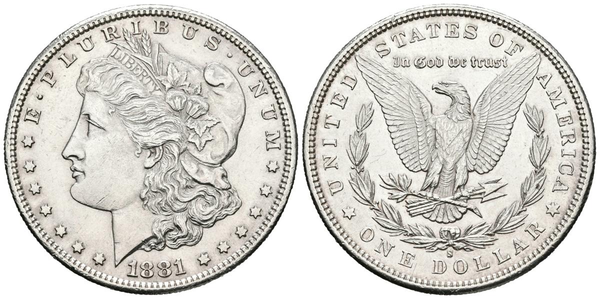 USA. 1 USD (Ar. 26.69g / 38mm) *. 1881. San Francisco S. (Km # 110). Extremely Fine. Marquitas.