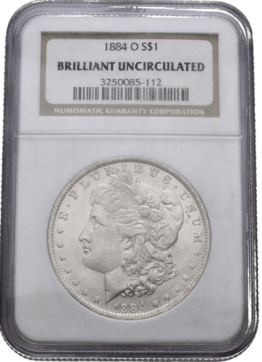 USA. 1 USD (Ar. 26.73g / 38mm) *. 1884. New Orleans O. (Km # 110). Brilliant Uncirculated. Encapsulated by NGC. * Theoretical weight and measure.
