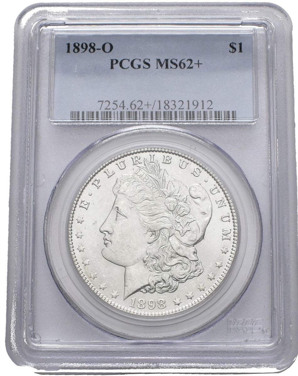 USA. 1 USD (Ar. 26.73g / 38mm) *. 1898. New Orleans O. (Km # 110). MS 62+. Encapsulated by PCGS. * Theoretical weight and measure.
