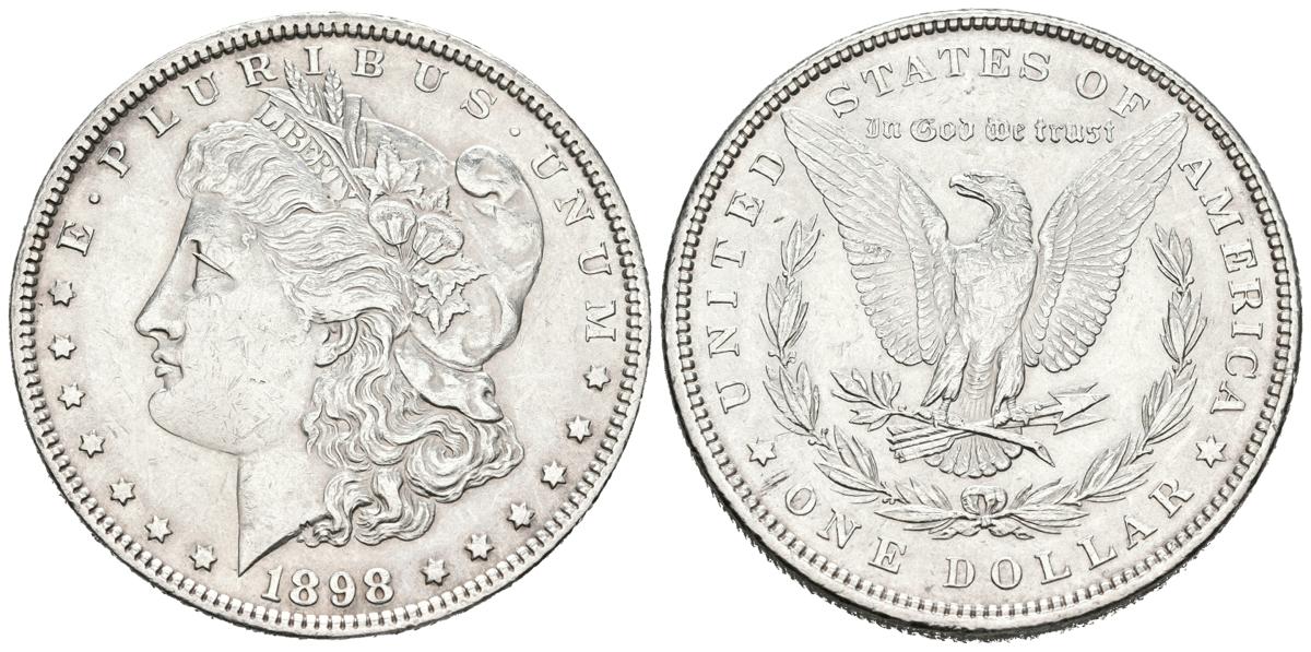 USA. 1 USD (Ar. 26.67g / 38mm) *. 1898. Philadelphia. (Km # 110). Good Very Fine.