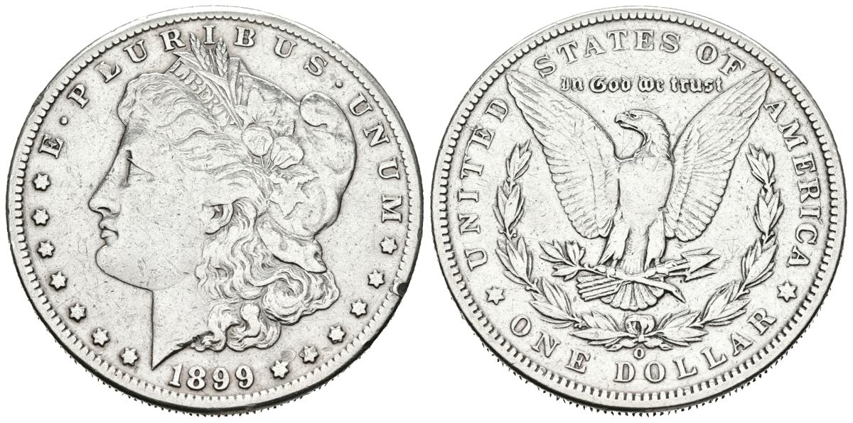 USA. 1 USD (Ar. 26.53g / 38mm) *. 1899. New Orleans O. (Km # 110). Very Fine. Cleaned.
