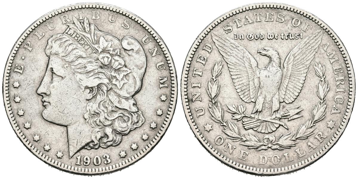 USA. 1 USD (Ar. 26.58g / 38mm) *. 1903. Philadelphia. (Km # 110). Very Fine.