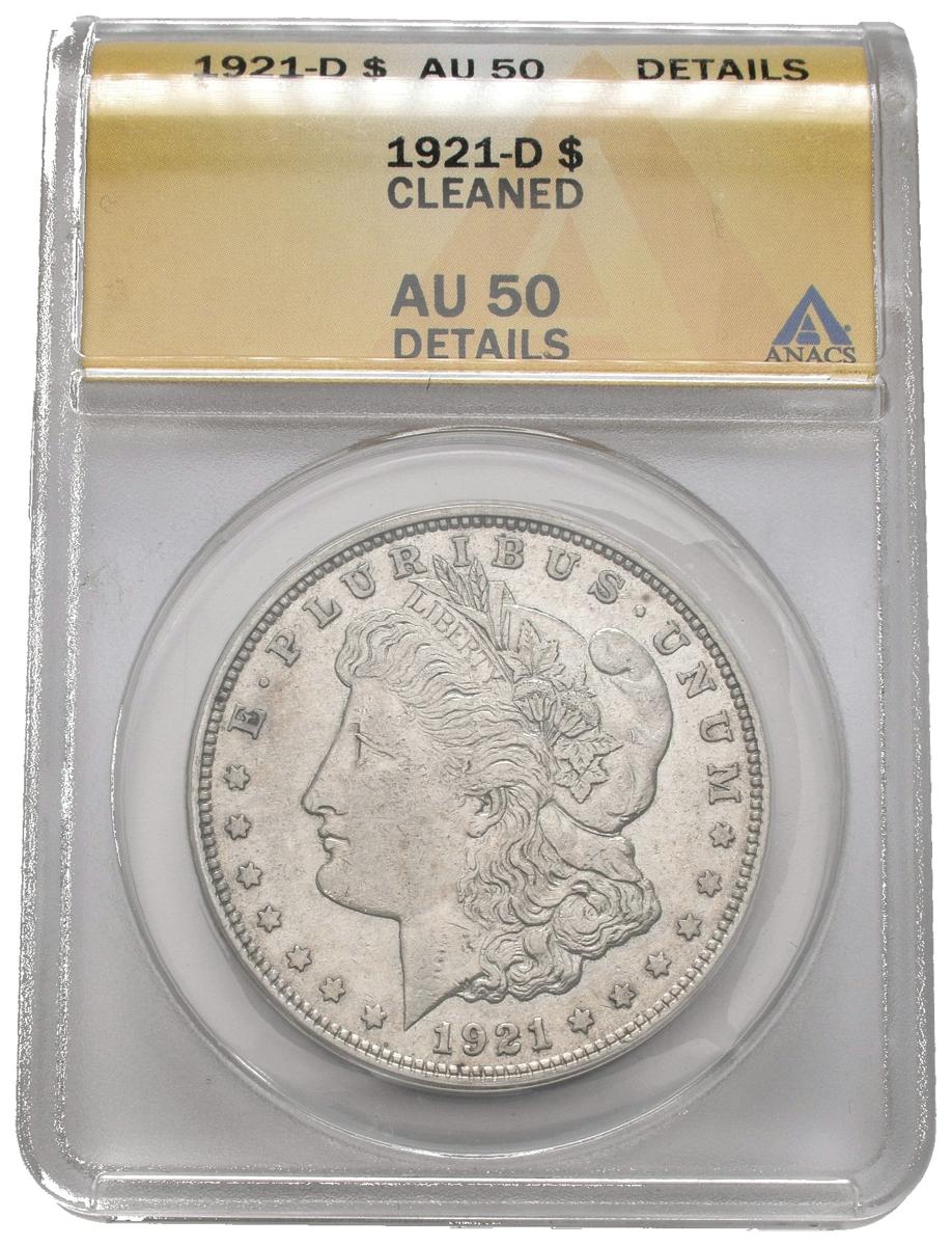 USA. 1 USD (Ar. 26.73g / 38mm) *. 1921. Denver D. (Km # 110). AU 50 Details. Cleaned. Encapsulated by ANACS. * Theoretical weight and measure.