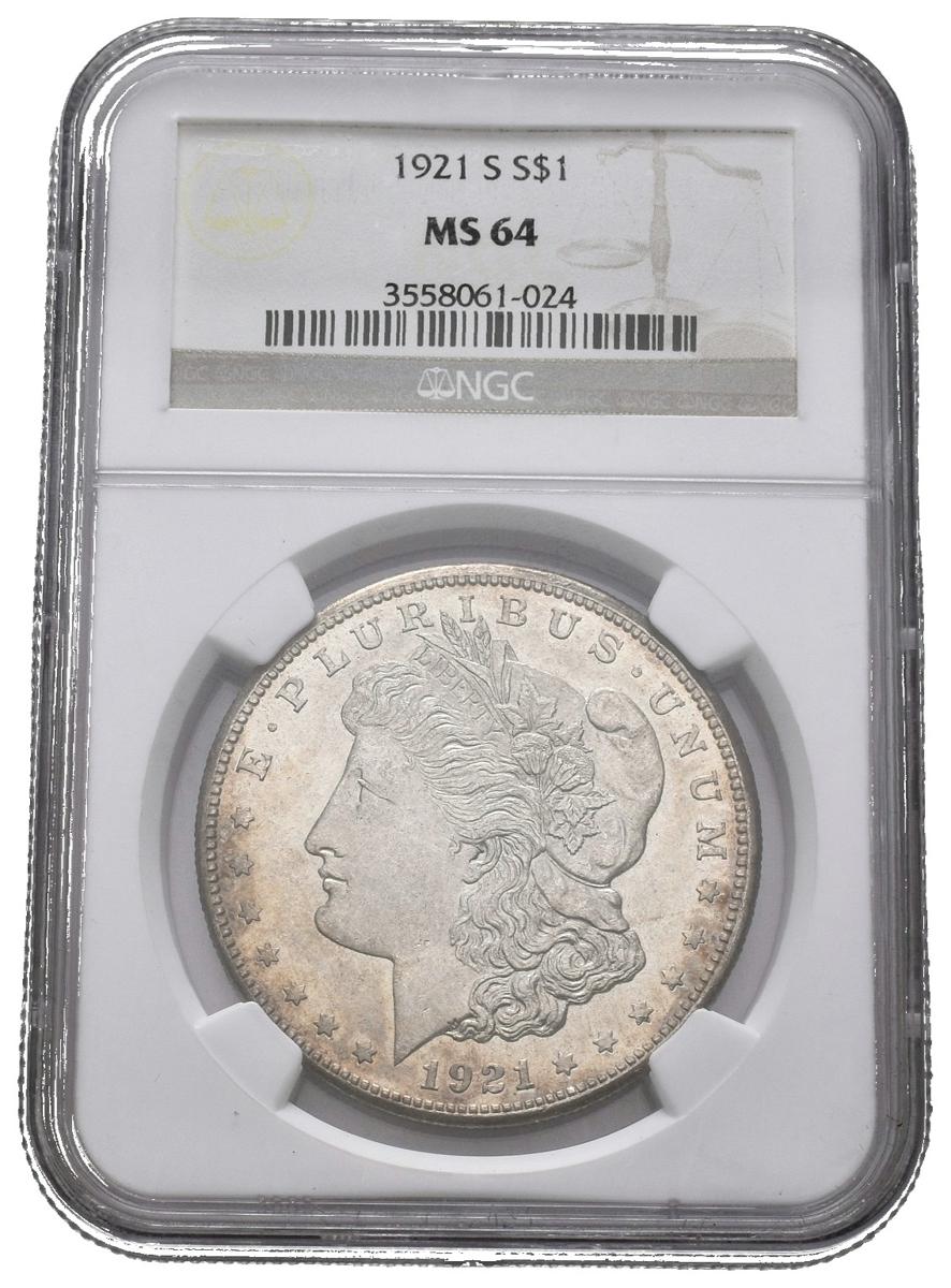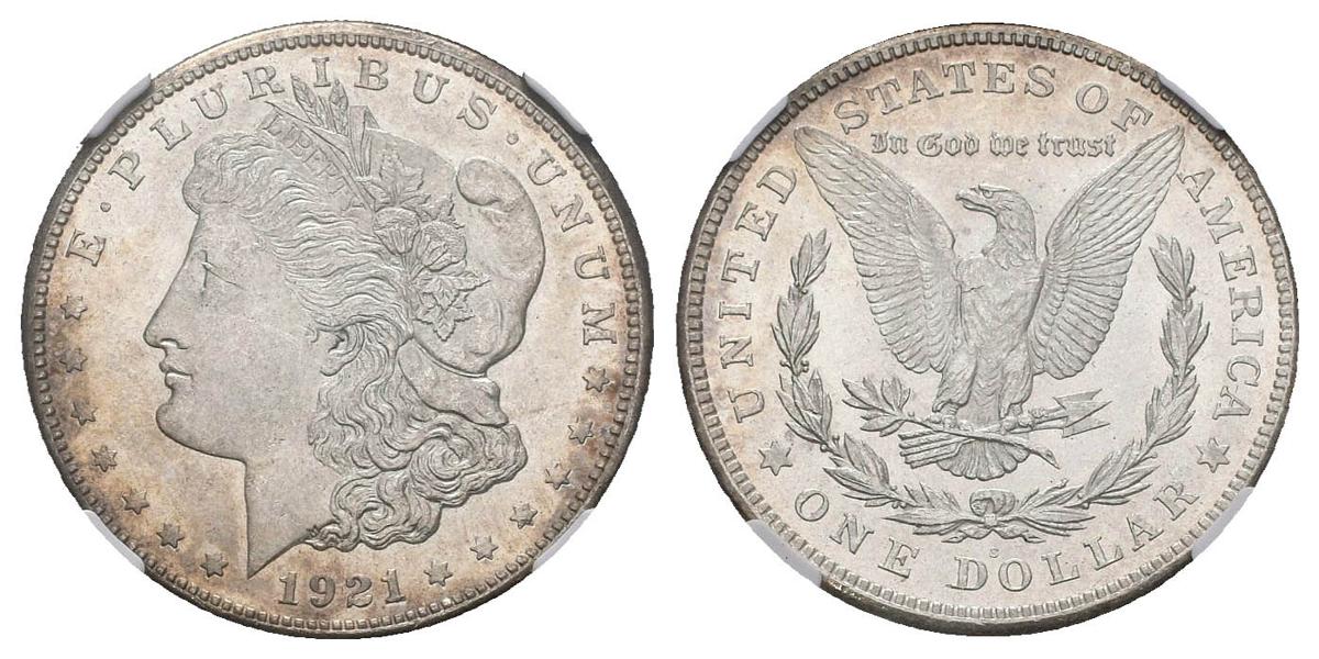 USA. 1 USD (Ar. 26.73g / 38mm) *. 1921. San Francisco S. (Km # 110). MS 64. Encapsulated by NGC. * Theoretical weight and measure.
