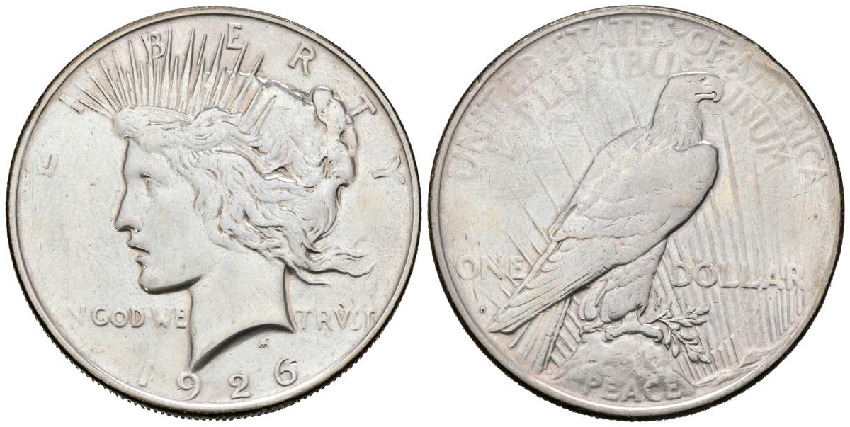 USA. 1 USD (Ar. 26.57g / 38mm). 1926. Denver. D. (Km # 150). Good Very Fine. Cleaned.