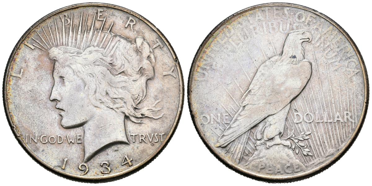 English USA. 1 USD (Ar. 26.60g / 38mm). 1934. Philadelphia. (Km # 150). Good Very Fine. Cleaned.