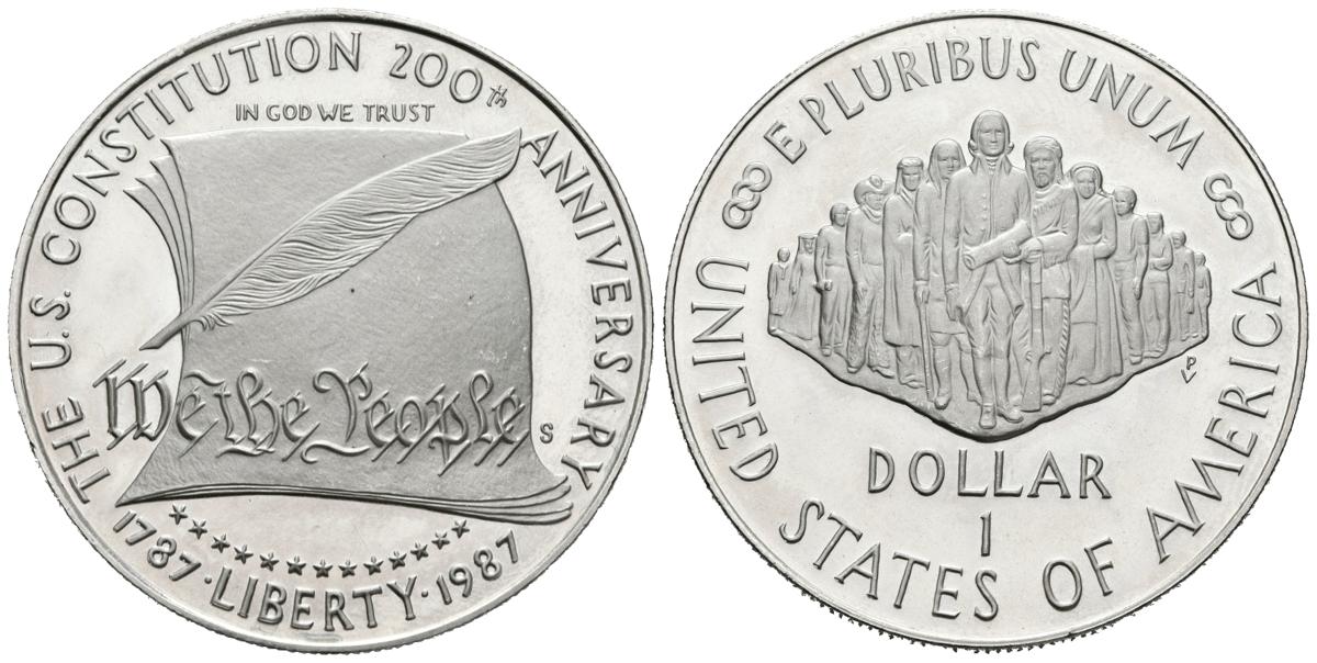 USA. 1 USD (Ar. 26.61g / 38mm). 1987. Bicentennial of the Constitution of 1787. (Km # 220). PROOF.