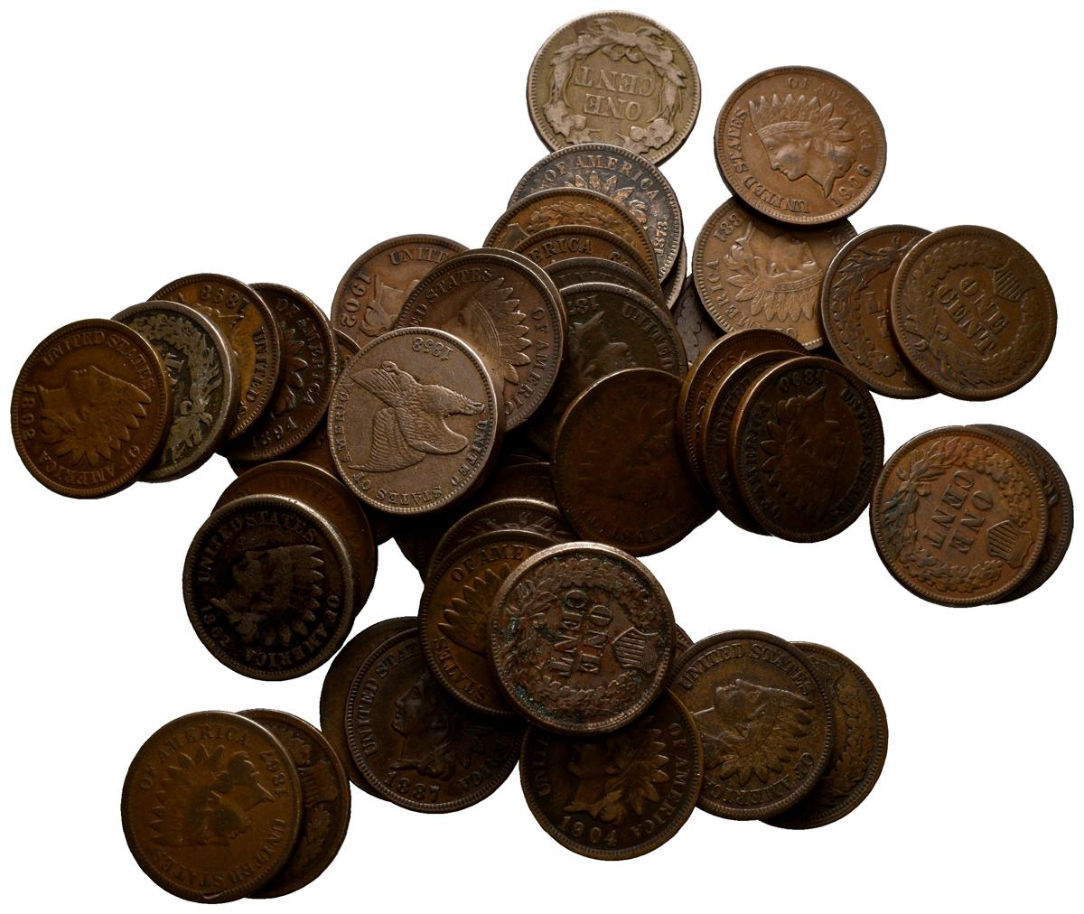 USA. Magnificent lot consisting of 51 1 cent coins of the Indian Head type. The set also includes 3 Flying Eagle Cent from the years 1857 and 1858 (large print and small print variants). Mints between 1859 and 1909. No repeated pieces. Different states of conservation. TO EXAMINE.