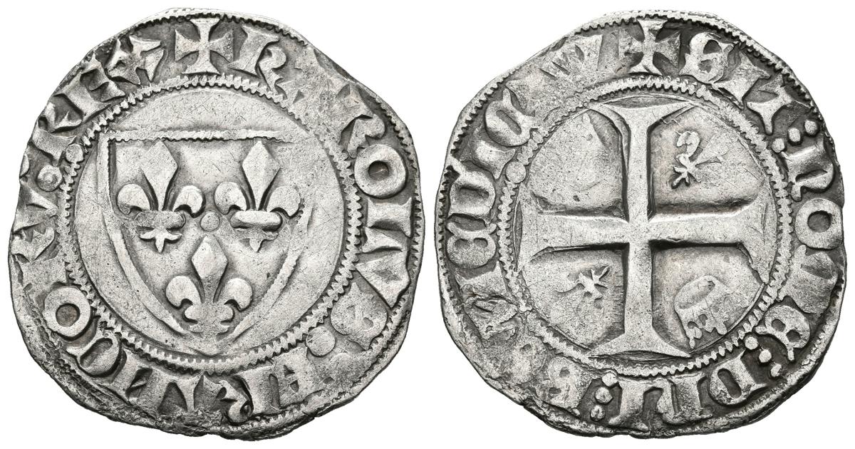 FRANCE, Charles VI (1380-1422). Blanc Guenar. (Ar. 3.15g / 25mm). 1st issue. (Duplessy 377). Very Fine.