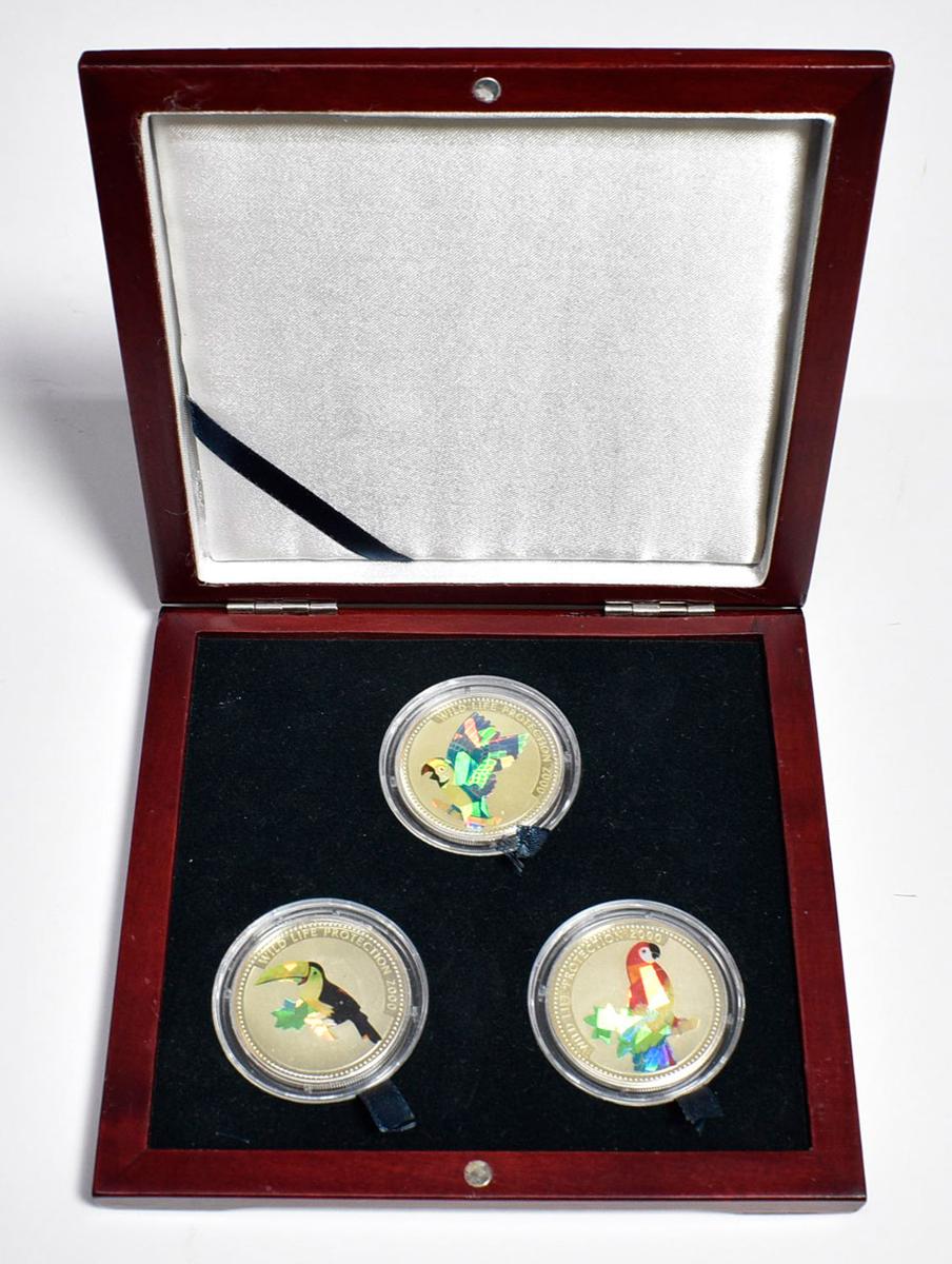 DEMOCRATIC REPUBLIC OF CONGO. Complete official set of 3 10 Franc coins commemorating birds. Ar (holographic details). PROOF.