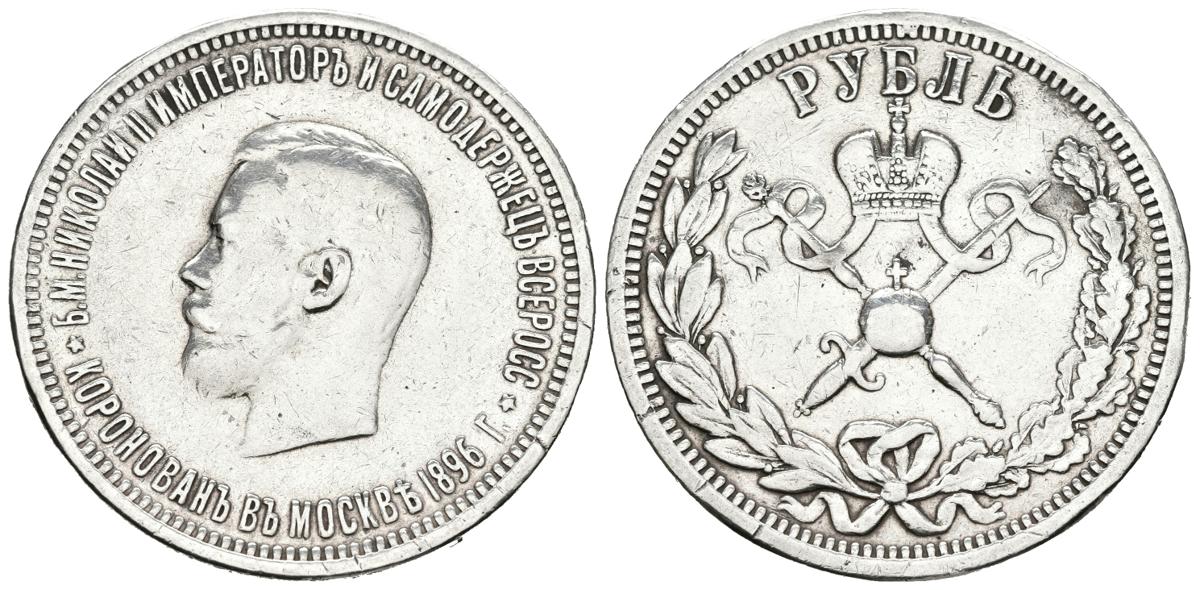 RUSSIA. 1 Ruble (Ar. 19.83g / 34mm). 1896. Coronation of Nicolás II. (Km # 60). Very Fine. Cleaned.