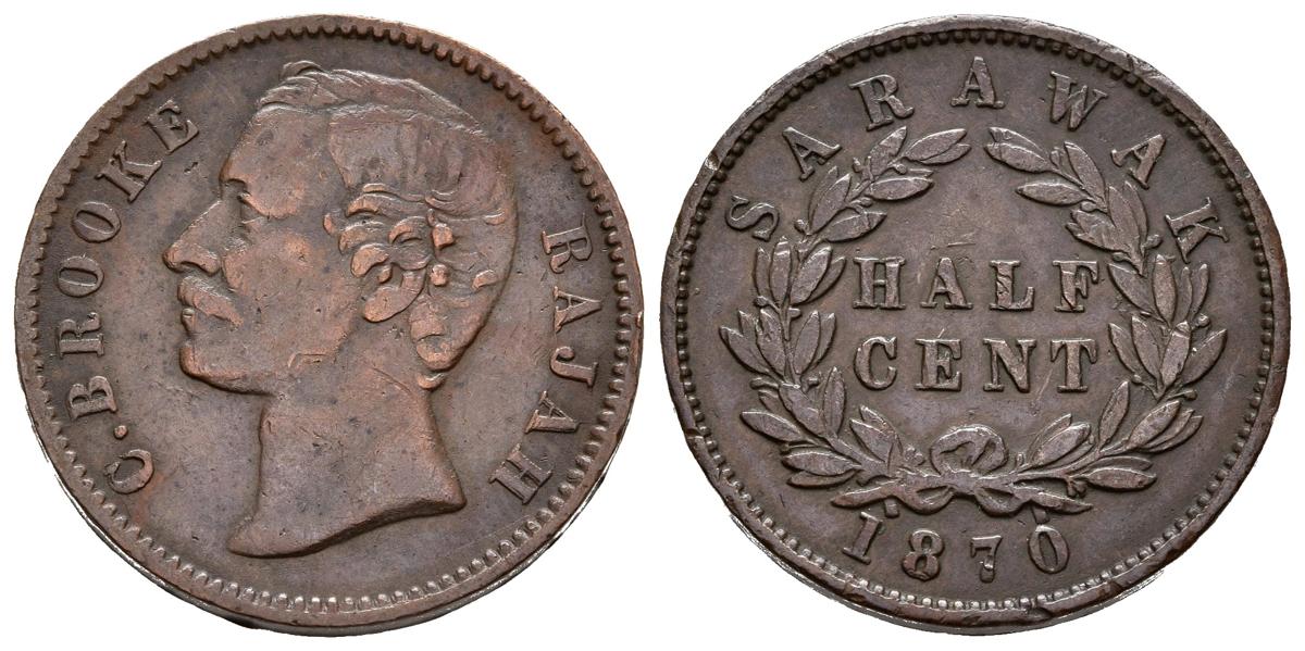 English SARAWAK (State of Malaysia). 1/2 Cent (Ae. 4.70g / 18mm). 1870. Birmingham H. British Protectorate. Rajah Charles Brooke. (Km # 5). Almost Very Fine/ Very Fine.