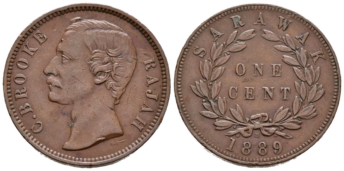 SARAWAK (State of Malaysia). 1 Cent (Ae. 9.20g / 29mm). 1889. Birmingham H. British Protectorate. Rajah Charles Brooke. (Km # 6). Very Fine.